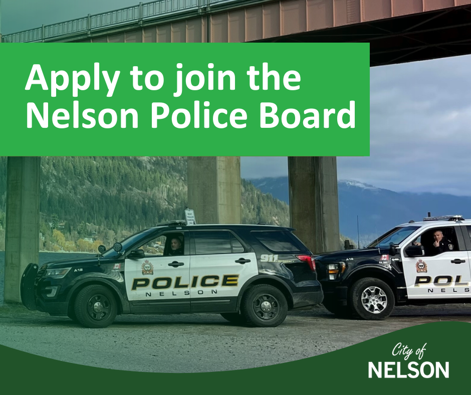 The City of Nelson is looking for volunteer board members for the Nelson Police Board. Police boards provide independent civilian governance and oversight of municipal police services.