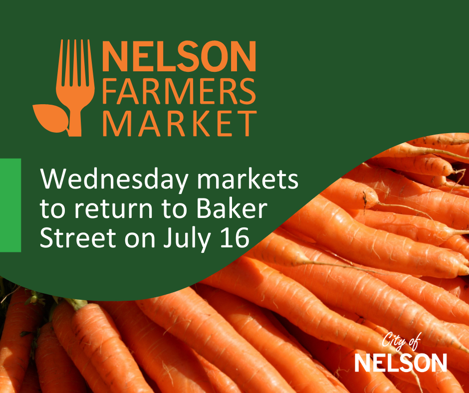 The City is committed to promoting the Nelson Farmers Market and helping vendors connect with customers, and will run a communications campaign around the location change, including public signs, posters, radio ads and social media posts.
